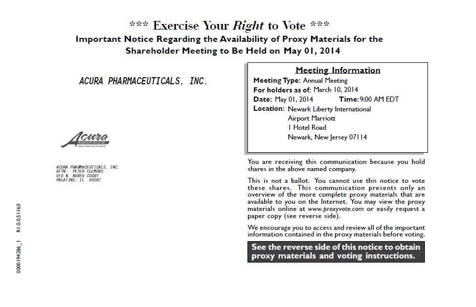 ACURA PHARMACEUTICALS, INC.
